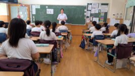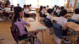 栄養教諭に、正しい姿勢について授業をしてもらいました。
