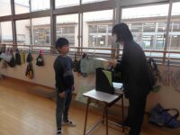 各教室に戻ってからは担任の先生から通知表が渡されました。